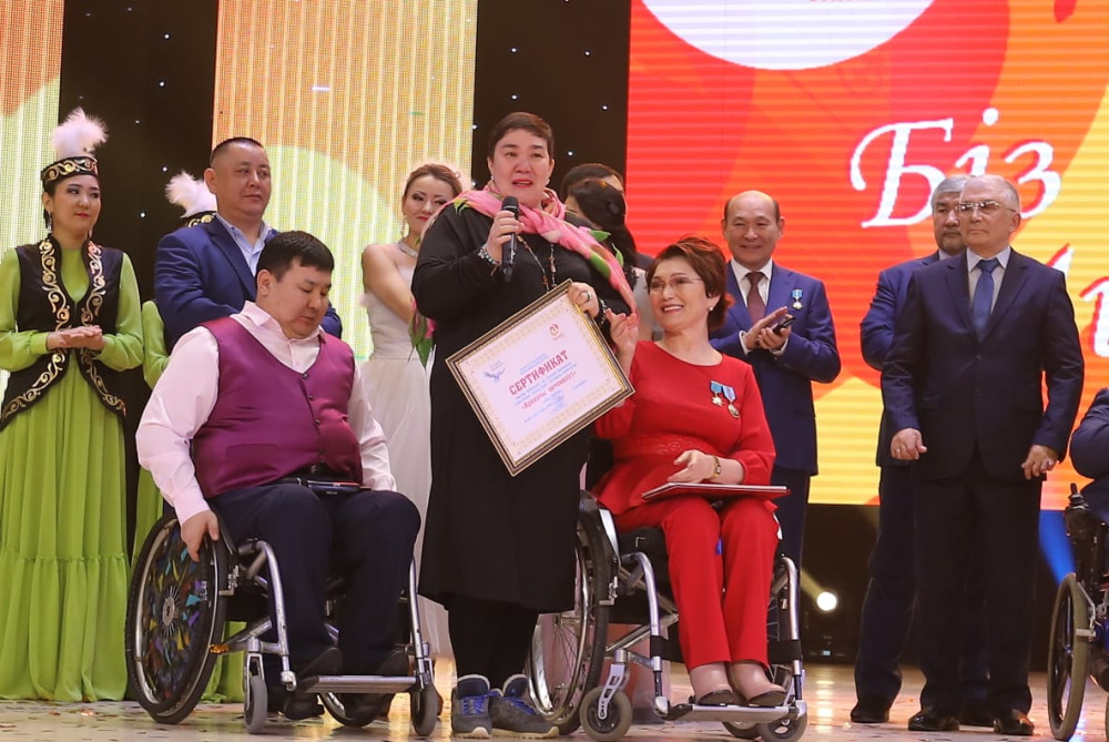 В ходе мероприятия аким региона Бердыбек Сапарбаев вручил лидеру общественных организаций инвалидов Актюбинской области Куралай Байменовой, удостоенной звания "Қазақстанның Еңбек Ері", ключи от специального автотранспорта, оборудованного спецподъемниками. Байменова отказалась от подарка и передала его общественному объединению детей-инвалидов "Ғажап".