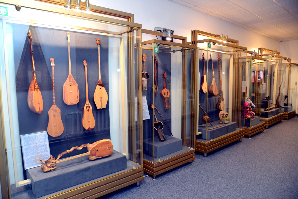 Основу коллекции "Музыкальные инструменты народов мира" составляют подарки, преподнесенные Президенту Казахстана главами зарубежных государств и правительств, международных организаций, иностранных делегаций и жителей Казахстана. Она включает в себя и простейшие образцы, и очень сложные по конструкции и музыкально-исполнительским возможностям инструменты. Среди них Дан бау – однострунная цитра – вьетнамский национальный музыкальный инструмент от Президента Социалистической Республики Вьетнам Чыонг Тан Шанга. Патефон производства артели "Граммофон" 1940–1950 годов с коллекцией раритетных пластинок Куляш Байсеитовой, Федора Шаляпина, Петра Чайковского и русских романсов 1940–1960 гг. Среди редчайших экземпляров также шарманка ручной работы, производства "Фабрики органов и оркестрионов" Иоганна Нечады (Одесса, конец XIX – начало XX вв.) – в свое время единственного в России производства шарманок. Всего в экспозиции представлено 35 экспонатов.