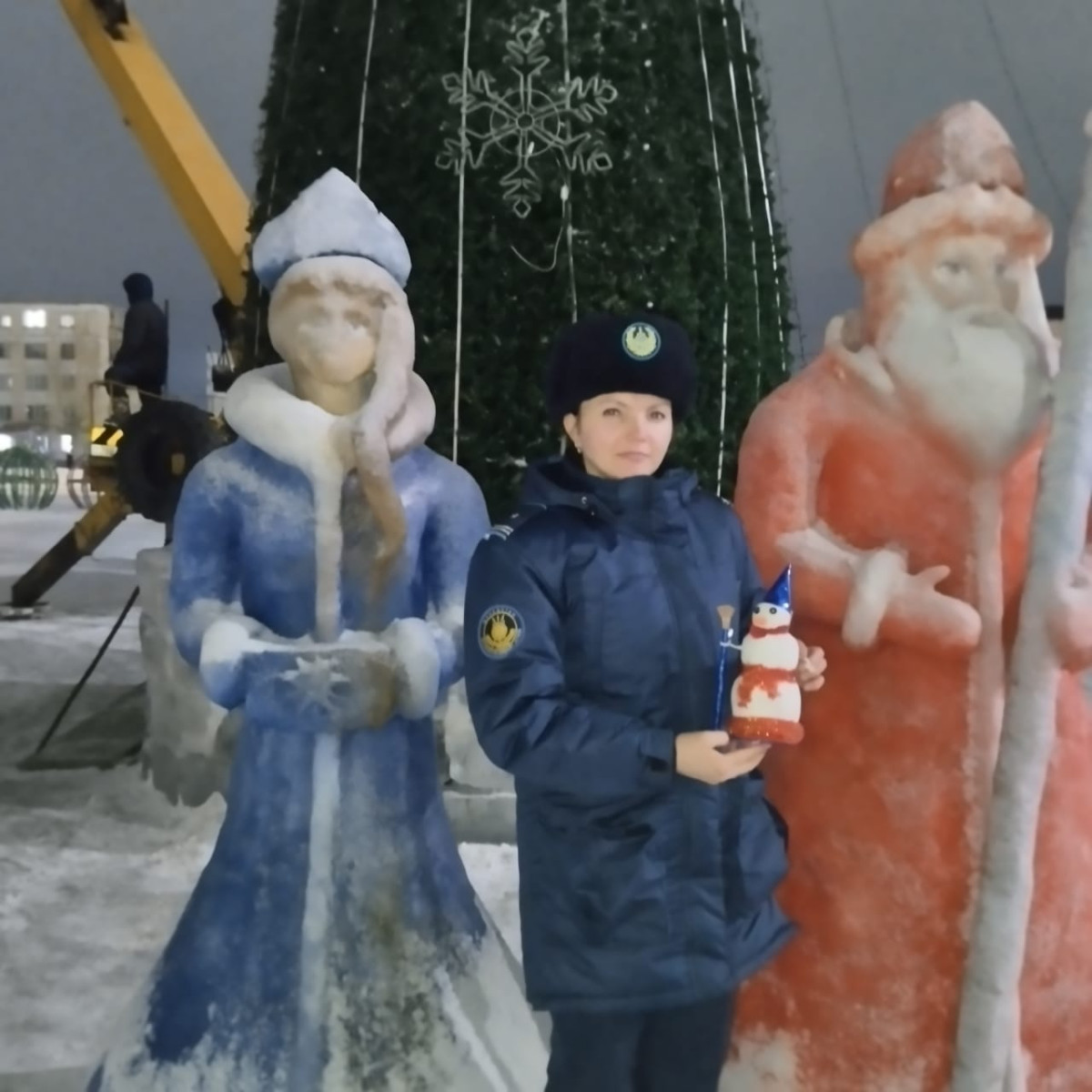 Ледяные фигуры Деда Мороза и Снегурочки появились у ёлки на центральной площади в Атбасаре. Выполнили скульптуры осуждённые акмолинского учреждения №1, передаёт BaigeNews.kz.