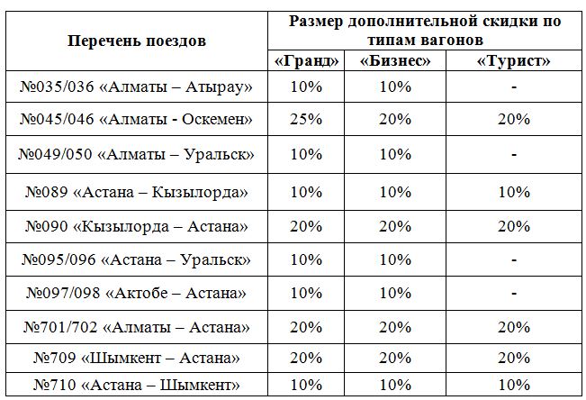 АО "Пассажирские перевозки" предлагает пассажирам весенние скидки до 20% на скоростные поезда "Тұлпар-Тальго", передаёт BNews.kz.