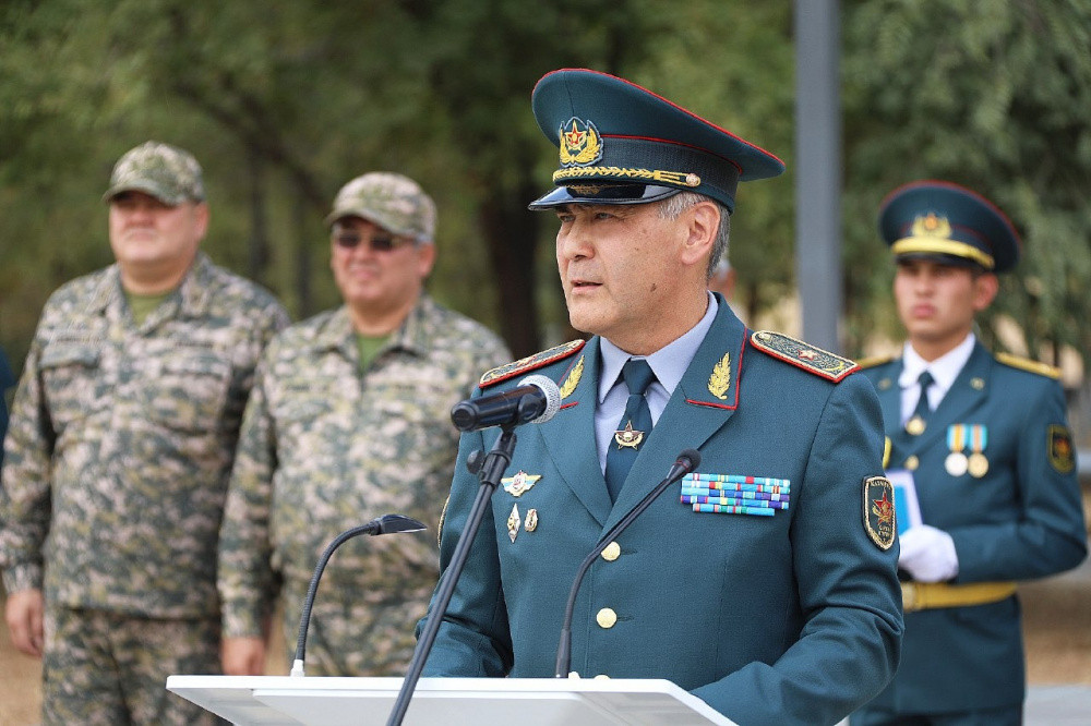Погибших военнослужащих почтили минутой молчания. В память о своих боевых товарищах торжественным маршем прошагал личный состав войсковых частей Арыси.