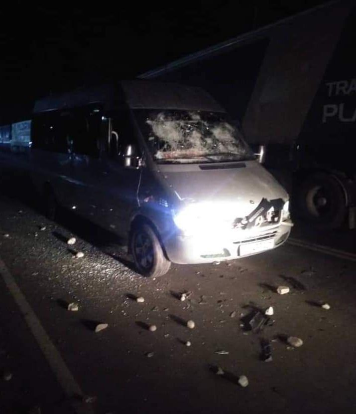 В мессенджере WhatsApp распространяли фотографии микроавтобуса, поврежденного во время конфликта между сотрудниками Госкомитета национальной безопасности и неизвестными гражданами на контрольно-пропускном пункте "Чалдовар".