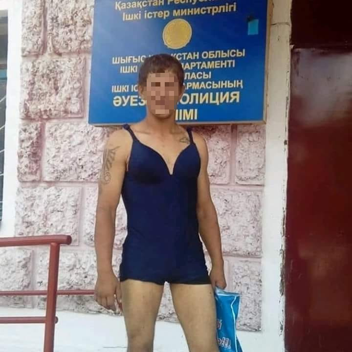 В Семее звездой Интернета стал молодой человек в женском купальнике. Его фотография, сделанная в отделении полиции, разлетелелась по соцсетям, сообщает портал altaynews.kz.