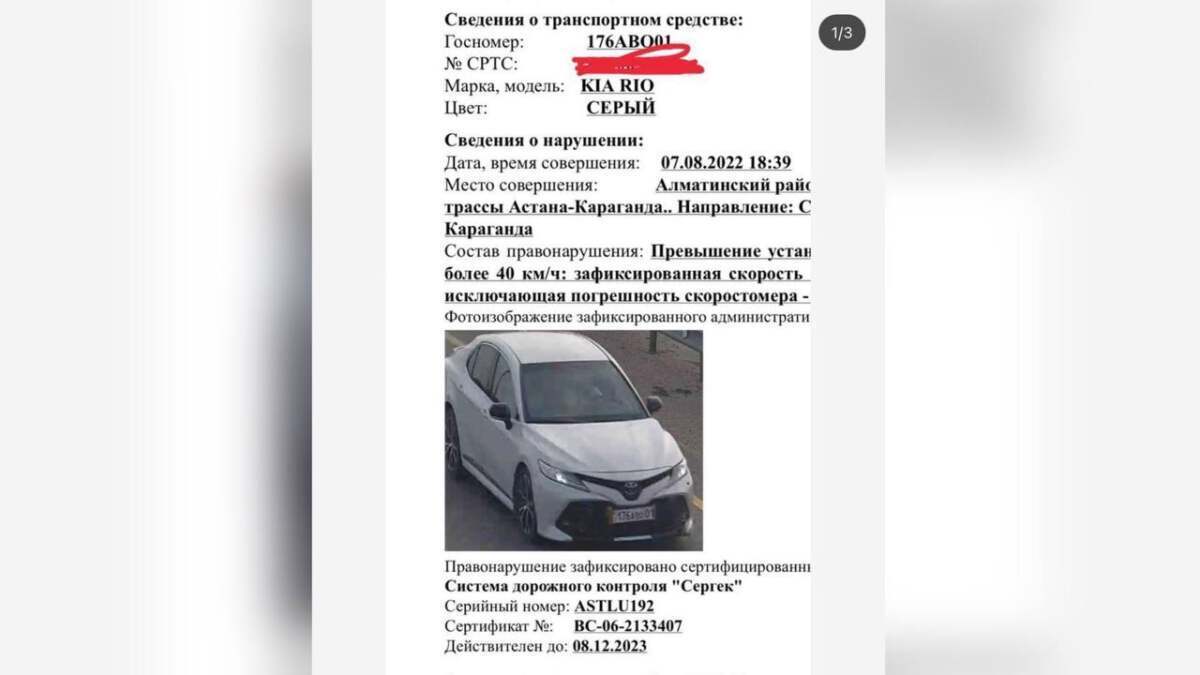 Установлено, что после кражи госномера его владелец получал уведомления об административных штрафах за превышение зафиксированной скорости, сообщили в ДП Нур-Султана.