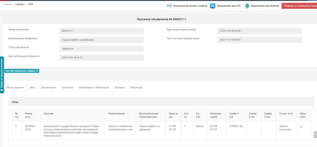 Отдел жилищно-коммунального хозяйства, пассажирского транспорта и автомобильных дорог Петропавловска на сайте госзакупок заявил лот под названием "уходовые работы за деревьями" на 21,8 миллиона тенге. Том числе на эту сумму власти планировали полив, побелку и прополку зелёных насаждений в зимний период. Однако позже этот лот отменили, передаёт BaigeNews.kz со ссылкой на Петропавловск News.