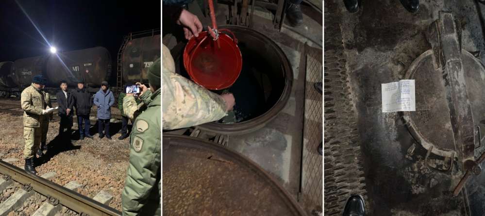 "Пограничным нарядом ПС КНБ РК в пункте пропуска "Чальдовар" (железнодорожный) Меркенского района Жамбылской области предотвращена попытка незаконного вывоза с территории Казахстана предположительно дизельного топлива в количестве 68 тонн и бензина в количестве 120 тонн. Вид топлива будет установлен экспертизой. Транспортировка трех цистерн с топливом осуществлялась грузовым железнодорожным составом под видом газового конденсата", − информировали в пресс-службе.