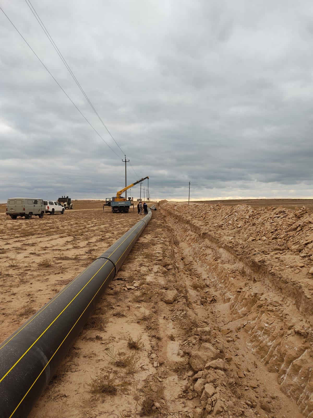 По последним данным, уже построены семь километров трубопроводов, строительно-монтажные работы продолжаются без остановки. На строительную площадку доставлены 9170 метров пластиковых труб, земляные работы составляют 11 500 метров. Заказчиком проекта является "ҚазТрансГазАймақ", генеральный подрядчик — ТОО "Қағам".