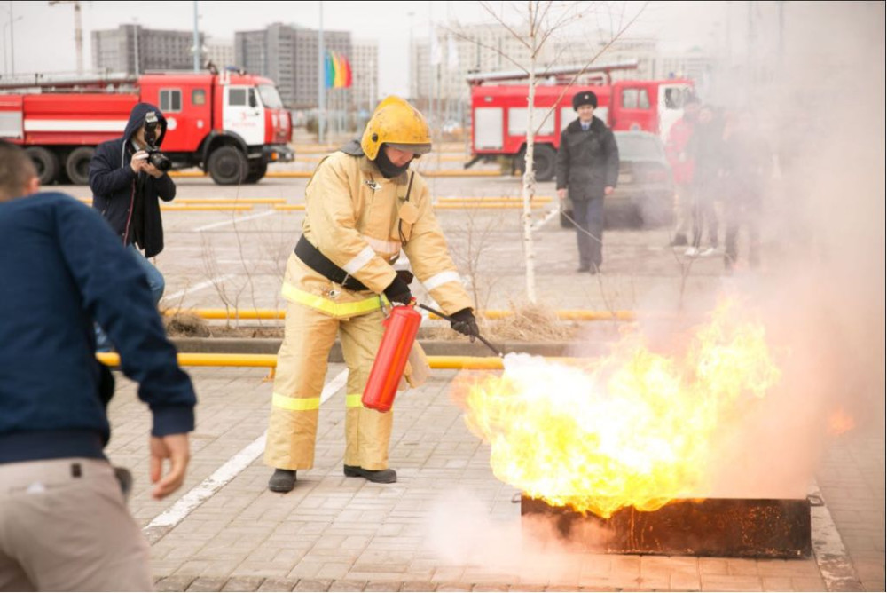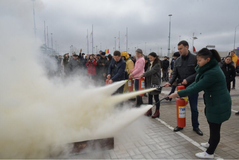 "Все деревянные части пропитаны огнезащитным составом Авангард. Соответственно на путях эвакуации у нас всё негорючее", - продолжил лекцию начальник противопожарной службы Mega Silk Way Арман Сейдалиев.
