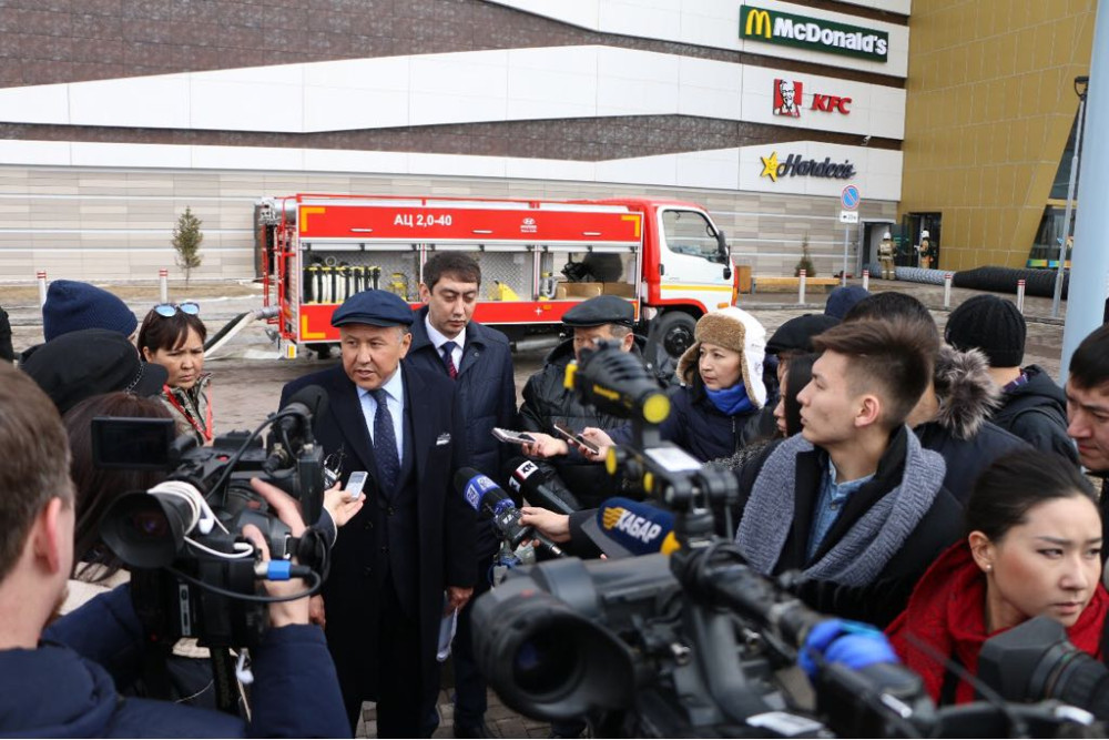 Председатель совета директоров Mega Management Нурлан Смагулов показал журналистам и акиму Астаны Асету Исекешеву, как работает пожарная безопасность в ТРЦ Mega Silk Way, передает "Елорда инфо".