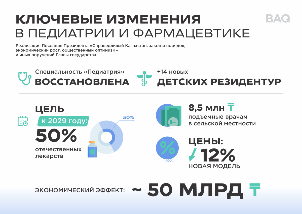 В системе здравоохранения решаются также кадровые вопросы. Так, например, восстановлена специальность "Педиатрия" и введена резидентура по 14 дефицитным детским специальностям.