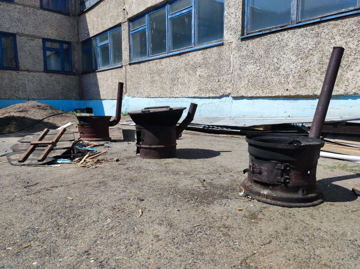 Учителя стали первыми волонтёрами, которые пришли на помощь. На улице в казанах они варили вторые блюда, в столовой кормили бойцов. Пожарным оправляли еду порционно. В дальнейшем полевая кухня переехала в летний лагерь Орбита, что рядом с селом Каштак.
