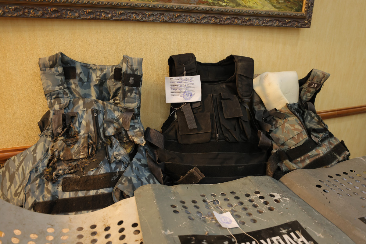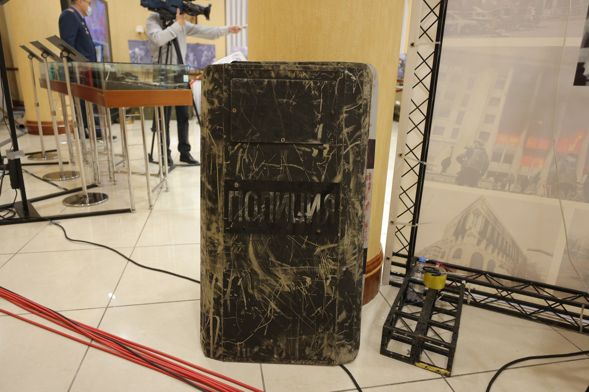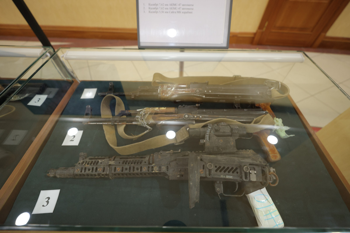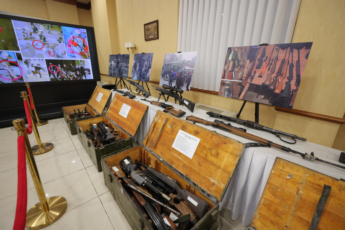 На выставке представлено более 170 единиц оружия и различных боеприпасов, а также различного оборудования, изъятого в ходе беспорядков.