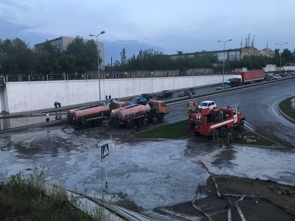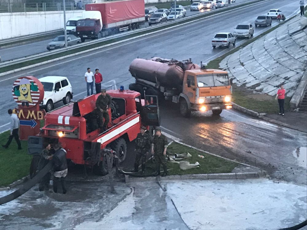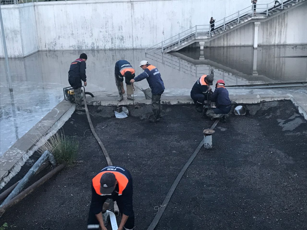 "Из-за скопившееся воды, люди временно стали заложниками дорожной пробки по ул. Селевина под железнодорожным мостом и по ул. Глинки в сторону пр. Ауэзова на кольцевой развязке. В настоящее время работа по откачке воды силами коммунальных служб и ЧС продолжается. Работают 3 автомобиля, 1 мотопомпа, 1 пожарная насосная станция и 18 человек", - говорится в сообщении.