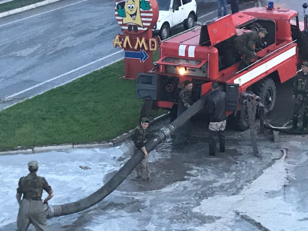 "В ходе визуального осмотра УЧС города Семей с придворовых территорий и улиц спасателями совместно с коммунальными службами был произведён отвод воды.