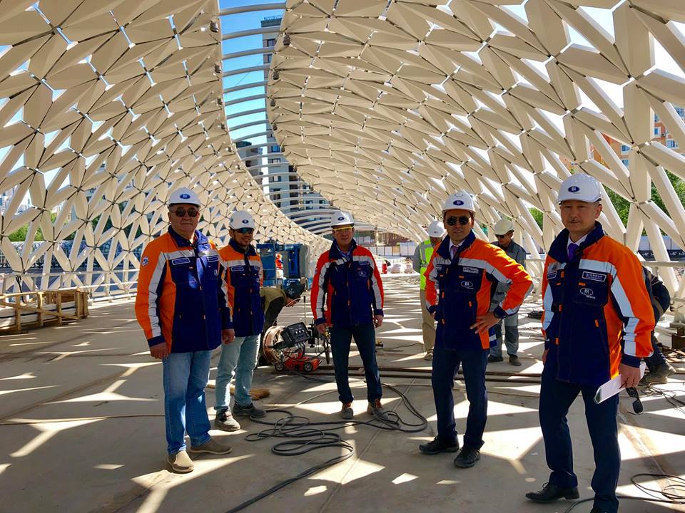 "Ещё одно преимущество нашей профессии, это то что мы детально и заранее знаем все технические особенности новых проектов. На неделе уже дадим возможность курсировать прогулочным теплоходам по Ишиму под этим красивым пешеходным мостом. Конструкция длинной 300 м, 2000 тонн металла состоящей из 2450 лепестков которые ни разу не повторяются! Скоро испытания, инженера наши улыбаются на утреннем обходе (орфография и пунктуация автора сохранены - прим.ред.)", - написал Айдын Рахимбаев.