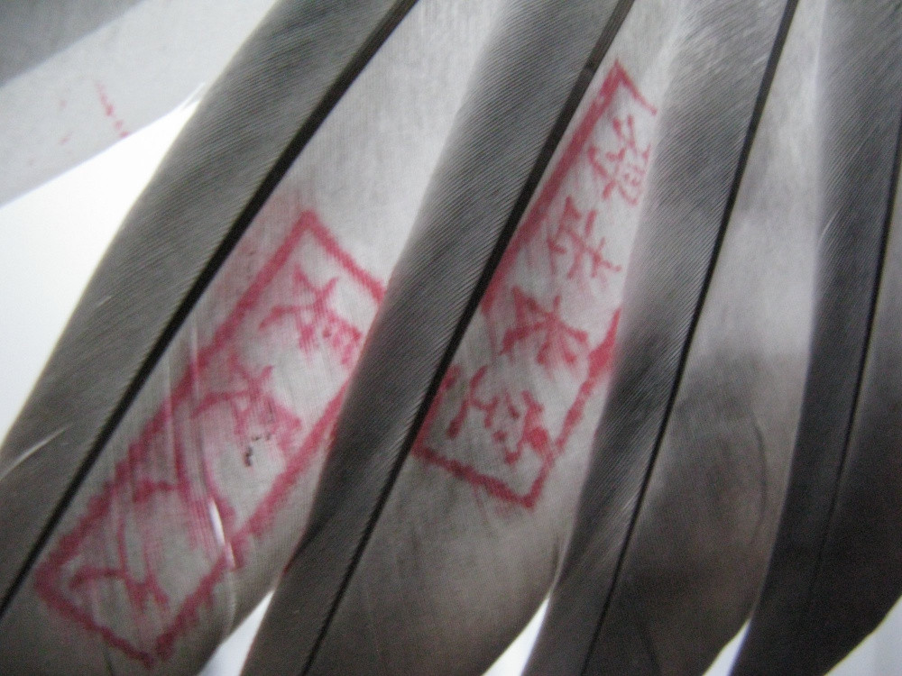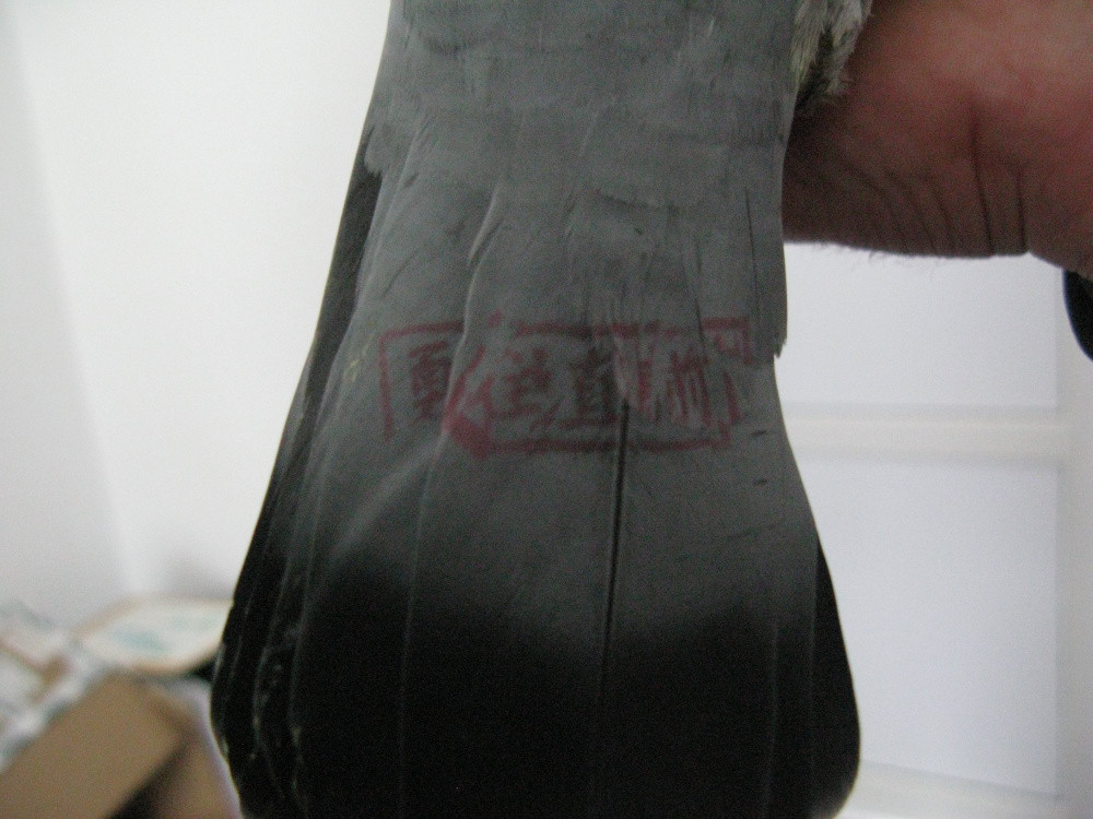 "Что же касается загадочных колец с микрочипами и голограммами, то они содержат информацию с личными данными голубя, участвующего в соревнованиях. А вот красные иероглифы, отштампованные на первостепенных маховых перьях, несут другой смысл, понятный людям, знающим китайский язык", - рассказал он.