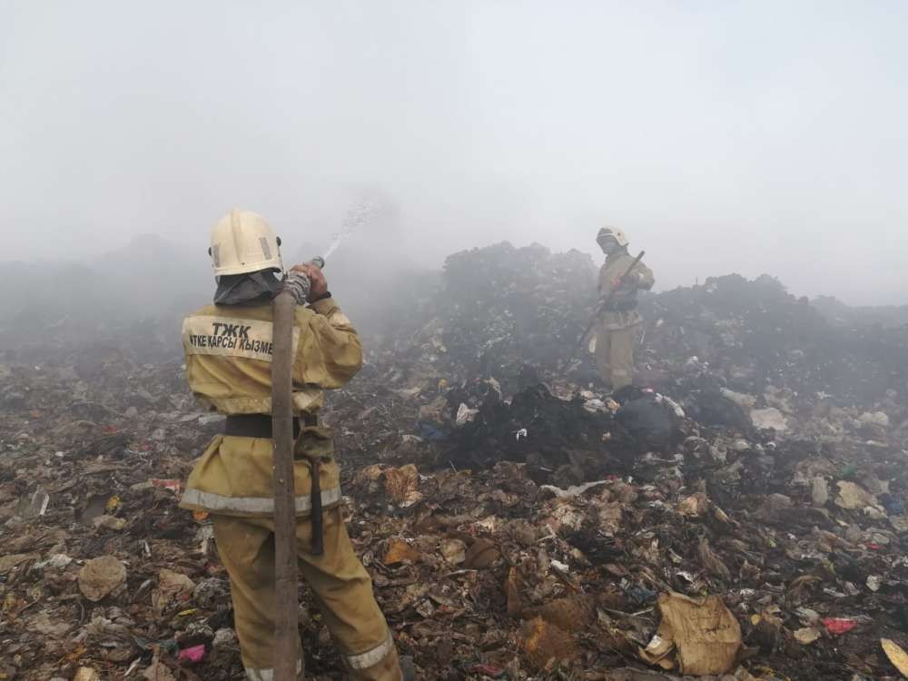 Сообщение о возгорании мусорного полигона в Илийском районе, в близи автодороги Алматы - Оскемен поступило в ДЧС Алматинской области 10 июня в 14:26 часов. Затем к тушению пожара на мусорном полигоне близ Алматы подключили вертолет. Забор воды для тушения осуществляется с водоема Нижний Терен Кара, расположенного примерно в трех километрах от места тушения. Несмотря на круглосуточную работу пожарных, тление продолжается, спустившись уже на глубину 10-15 метров.