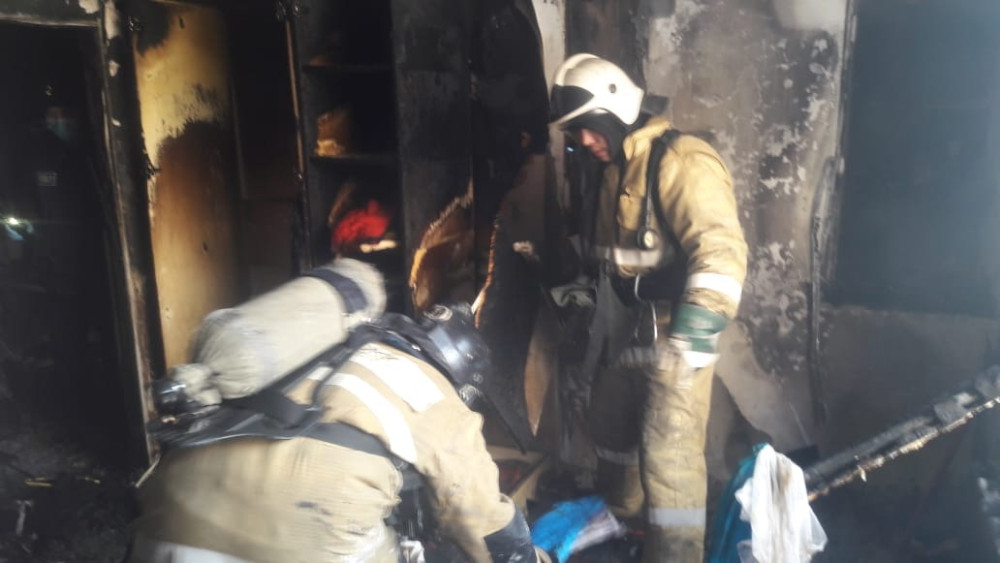 Вызов на центральный пункт пожарной связи "101" поступил в 11:16. Пожар произошел по ул. Кудайбердиулы, 31/1. Уже через 7 минут по прибытию подразделений Службы пожаротушения к месту вызова, было обнаружено, что в девятиэтажном жилом доме на втором этаже в спальном помещении горела мебель и домашние вещи на площади 20 кв.м.