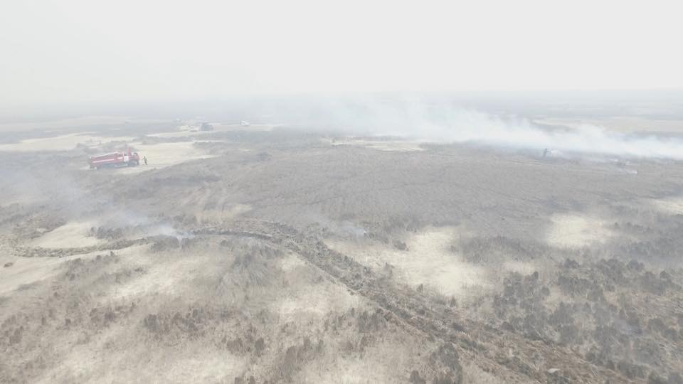 Позже в ведомтсве сообщили что горение камыша было ликвидировано после того, как пожарные произвели 23 сброса воды по три тонны. Посадку осуществили в 21.48. В целях мониторинга выполнялся облёт территории на вертолёте.