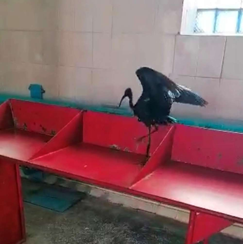 В ходе несения внутреннего наряда водитель пожарного автомобиля Карим Мусаев заметил большую чёрную птицу, которая приземлилась на кустарник перед фасадом пожарной части. К сожалению, взлететь она больше не смогла.