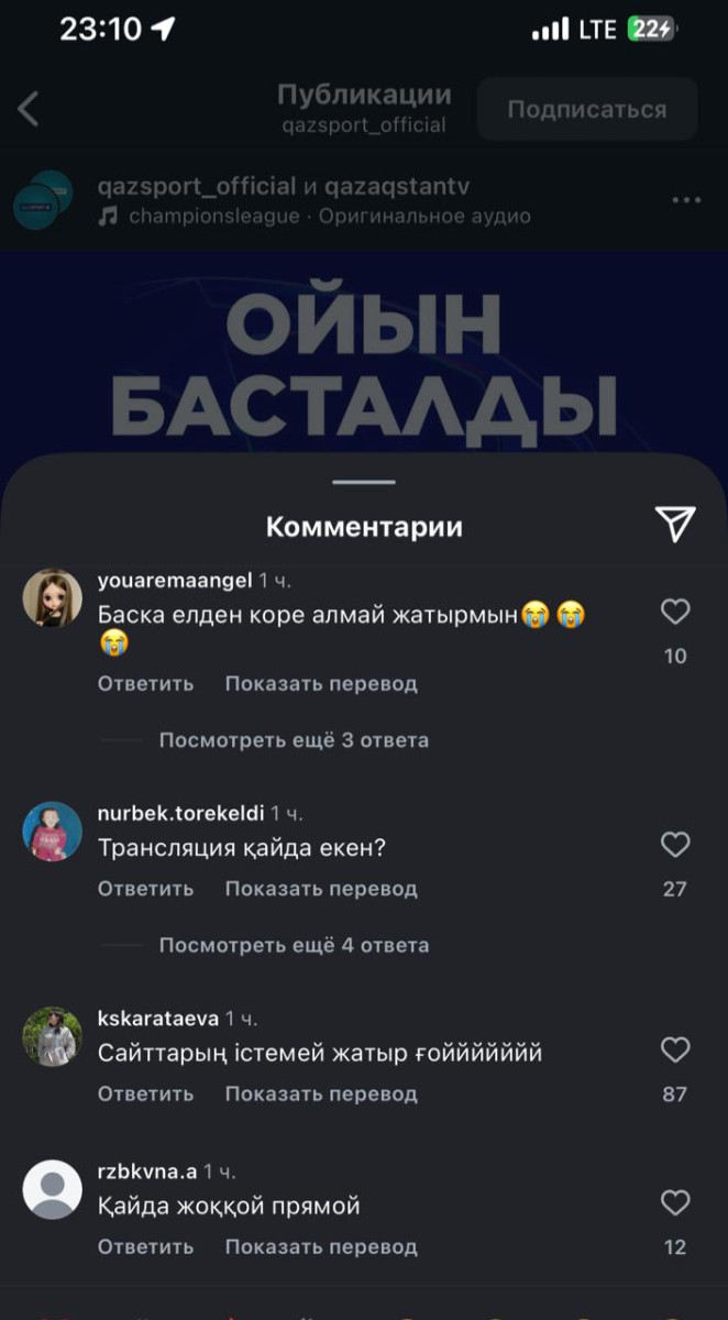 С первых минут матча зрители начали отмечать перебои: картинка зависала, эфир прерывался, а у многих страница сайта канала вовсе не открывалась. На экране появлялись сообщения "Сервер не найден" или "Время ожидания ответа от сервера истекло". Даже официальный сайт телеканала Qazaqstan периодически "ложился" из-за наплыва пользователей.