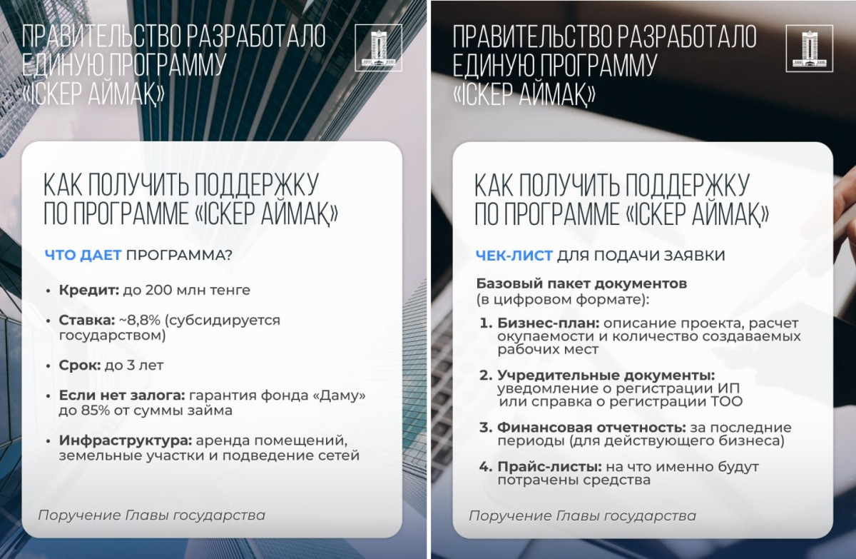 На заседании Правительства под председательством Премьер-министра Олжаса Бектенова рассмотрена единая программа "Іскер аймақ", направленная на развитие малого и микробизнеса, особенно в моно- и малых городах, а также в сельской местности, передаёт BAQ.KZ.