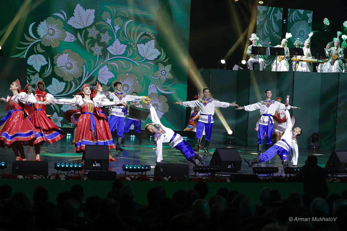 Мэтрами и молодыми исполнителями были исполнены массовые и сольные хореографические композиции, инструментальные и вокальные номера, в числе которых казахский танец "Күй шашу", азербайджанский народный танец "Яллы", внесённый Всемирной организацией ЮНЕСКО в список нематериального культурного наследия мира, немецкая полька "У деревянного трактира", попурри из песен народа РК, уйгурские, корейские, татарские танцы.