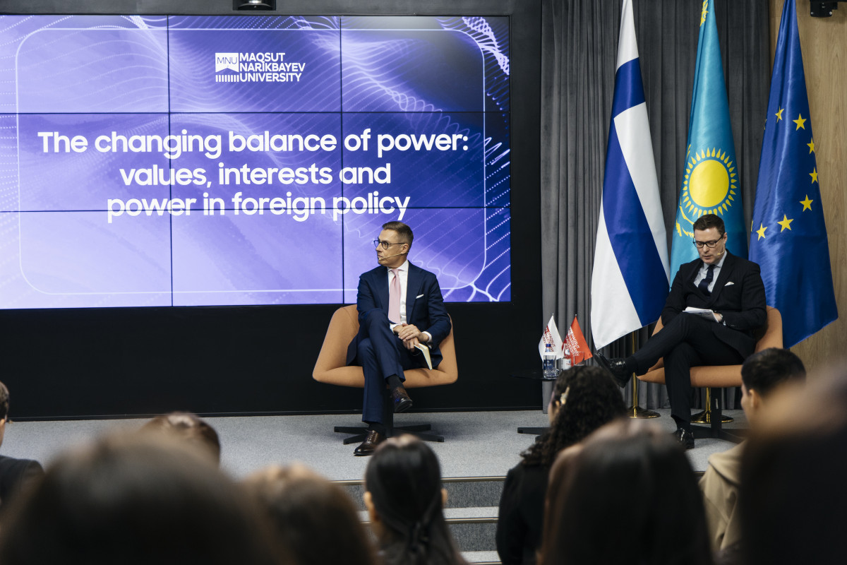 Президент Финляндии Александр Стубб в рамках визита в Казахстан выступил с лекцией в Maqsut Narikbayev University, передает BAQ.KZ.