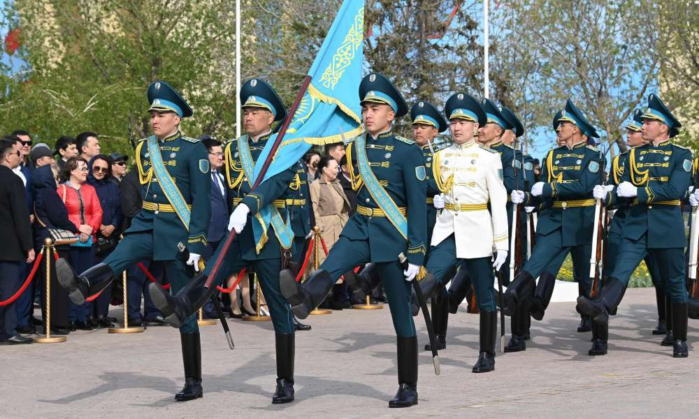 Духовой оркестр Республиканской гвардии исполнил Государственный Гимн, рота Почётного караула прошла торжественным маршем перед президентом, ветеранами и тружениками тыла Великой Отечественной войны.