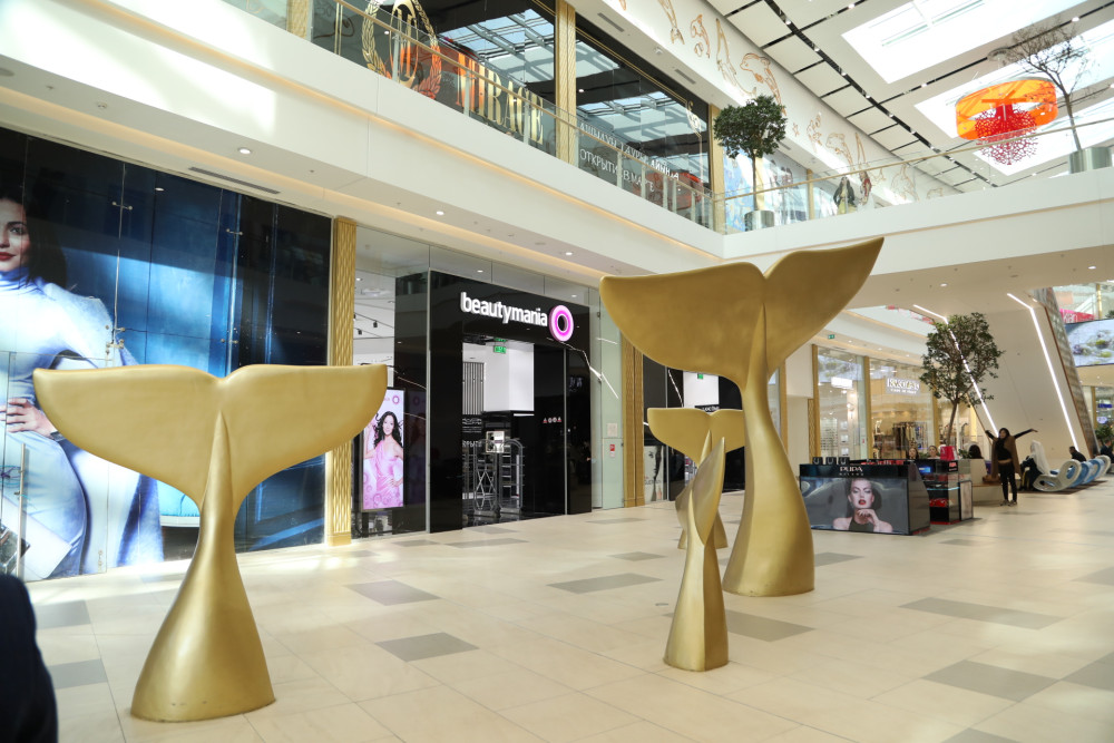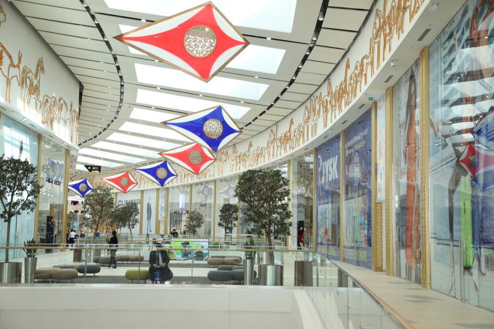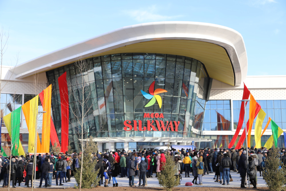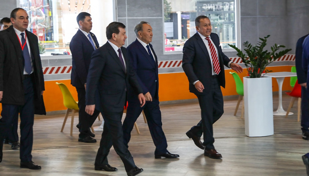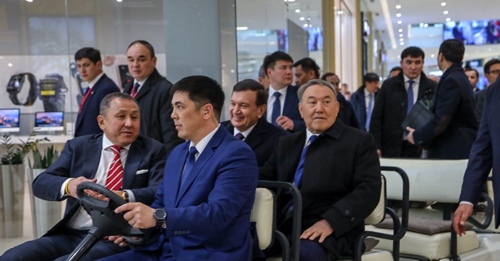 Далее, в рамках официального открытия ТРЦ «MEGA Silk Way», Нурсултан Назарбаев и Шавкат Мирзиёев осмотрели торгово-выставочные павильоны центра.