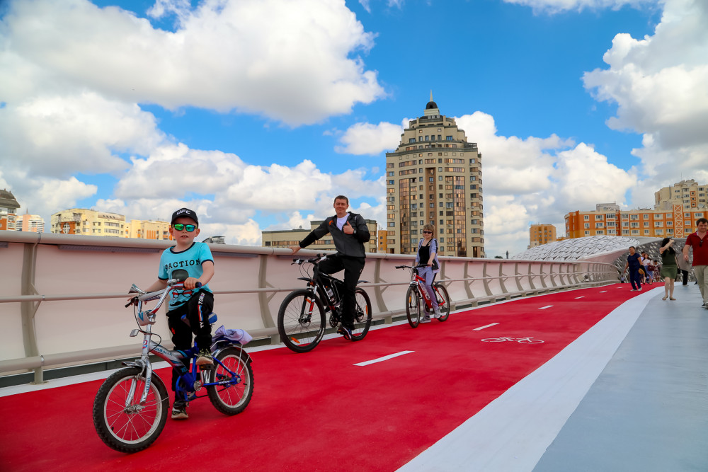 Вело-пешеходный мост и велосипедная инфраструктура возведены акиматами Атырауской, Туркестанской, Северо-Казахстанской, Павлодарской, Костанайской, Акмолинской и Жамбылской областей в рамках проекта "Регионы в дар Астане".