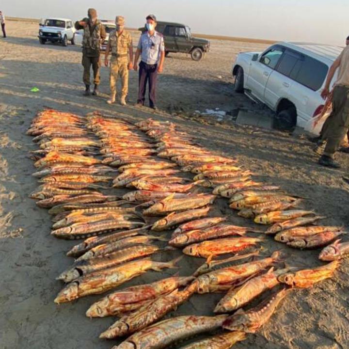 В машине было обнаружено 120 штук осетровых пород рыбы общим весом 468 килограммов. Ущерб государству от незаконно выловленной рыбы составил 136 515 600 тенге.