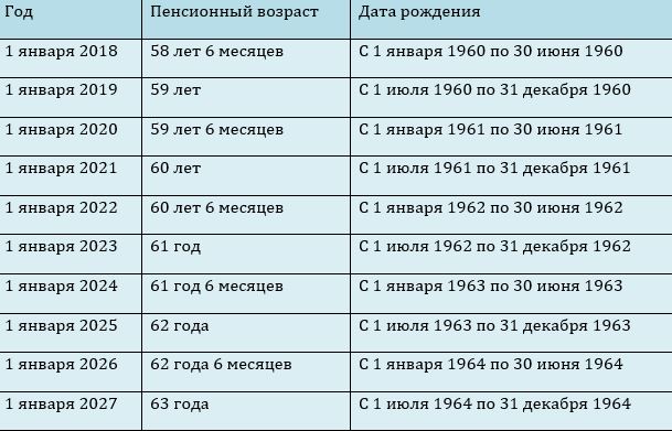 График поэтапного повышения пенсионного возраста