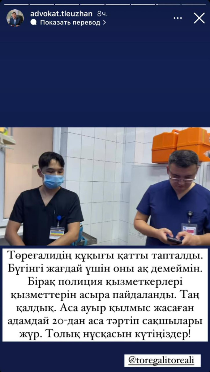 Полицейские нарушили права певца Торегали Тореали при его задержании, передаёт BaigeNews.kz. Об этом сообщил адвокат селебрити Тлеужан Кишкенебаев.