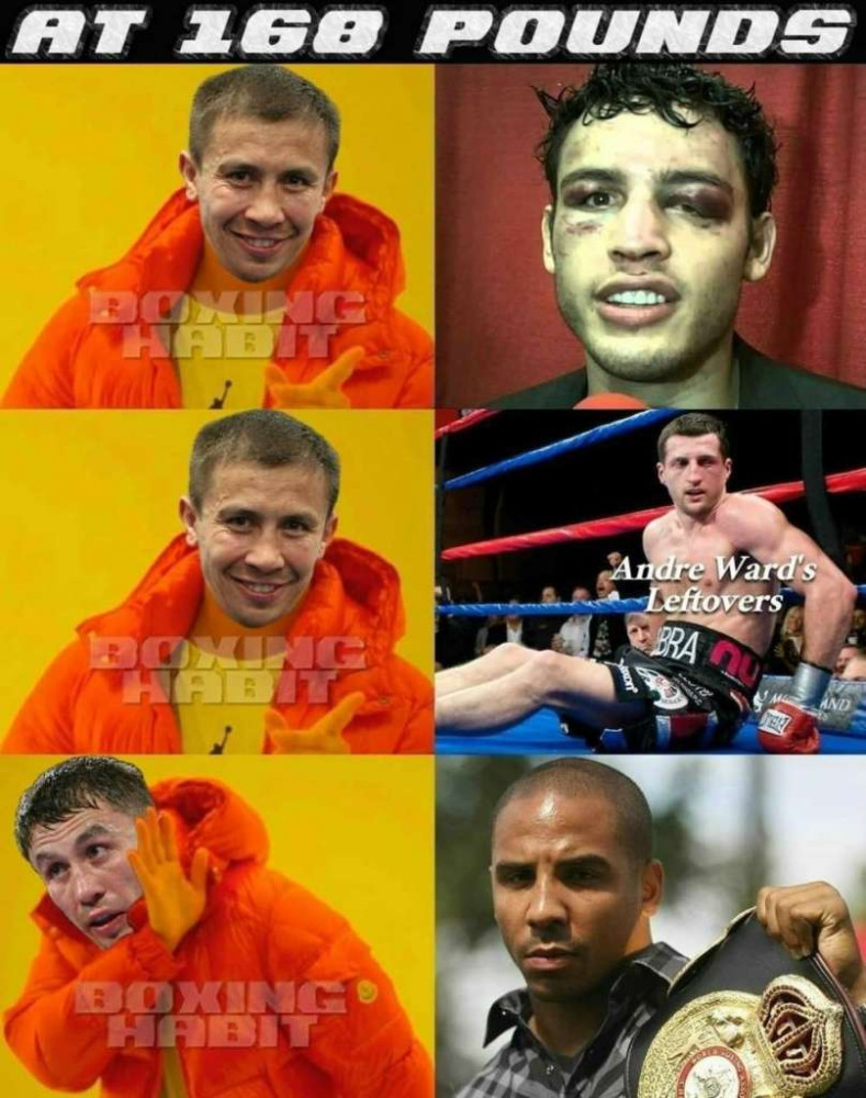 Twitter Boxing Habit, часто публикующий шуточные зарисовки на боксерскую тематику, на этот раз посвятил мем казахстанцу Геннадию Головкину(40-1-1, 35 КО), передает