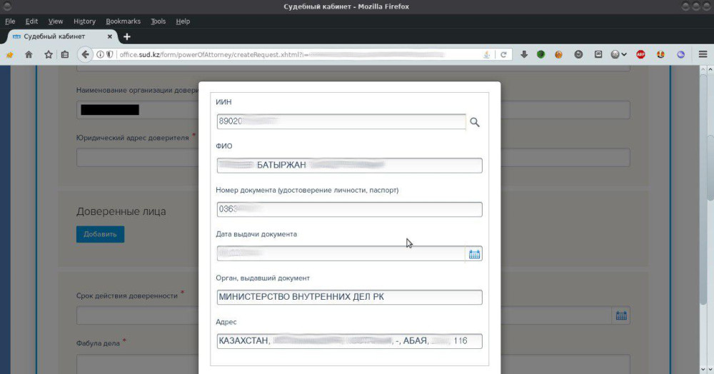 "На сегодня через судебный кабинет посредством электронной доверенности есть доступ только к ФИО доверителя. Также для сведения сообщаем, что ЦАРКА является частной компанией, которая согласно информации с их сайта занимается вопросами анализа и предотвращения кибератак и так далее. Официальных обращений по этому анализу в Верховный суд от ЦАРКА не поступало", - подчеркнули в ВС РК.