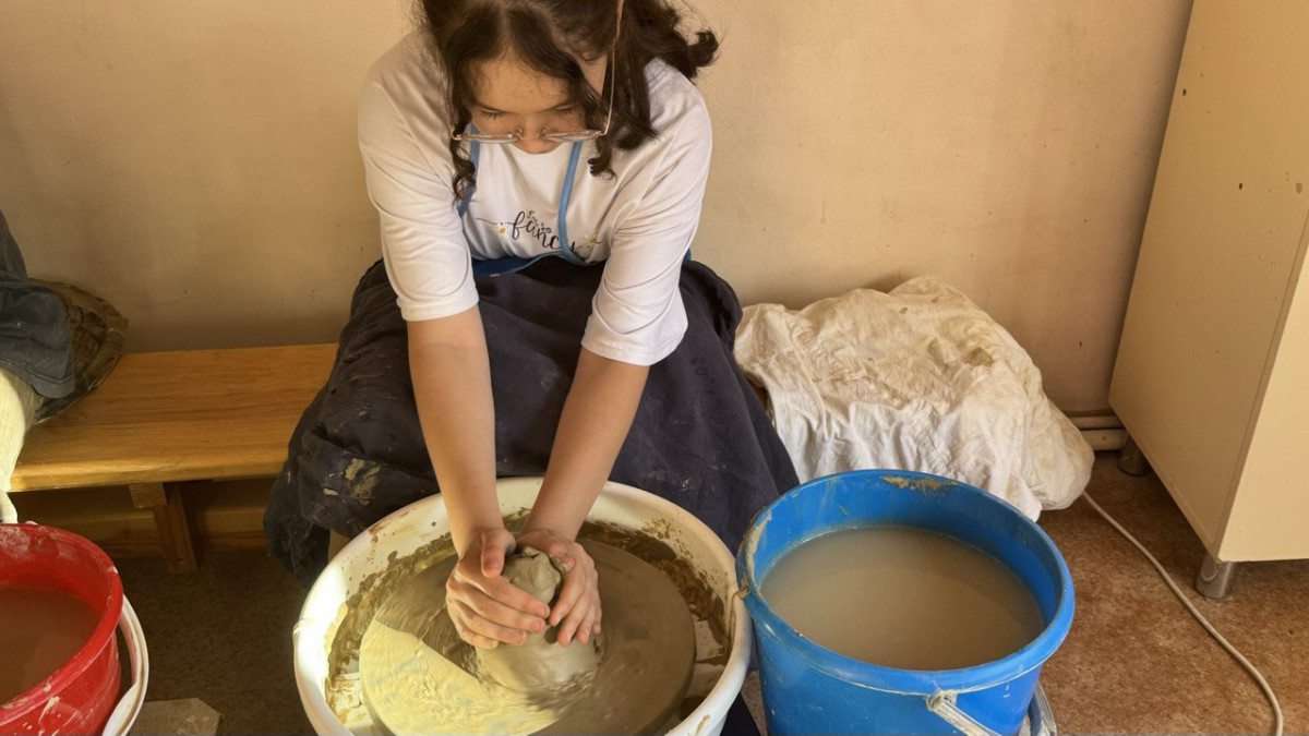 В здании информационно-ресурсного офиса как всегда людно. На занятия арт-терапией пришли девушки и юноши с особыми потребностями, а также их мамы. Под руководством арт-терапевта участники занятия крутят гончарный круг и начинают создавать творения из солнечной экибастузской глины: причудливые вазы, тарелочки, кружки, шкатулки и сувениры. Для кого-то это возможность испытать удовольствие от создания собственного шедевра, а кто-то с помощью податливой глины пытается снять стресс и успокоиться.