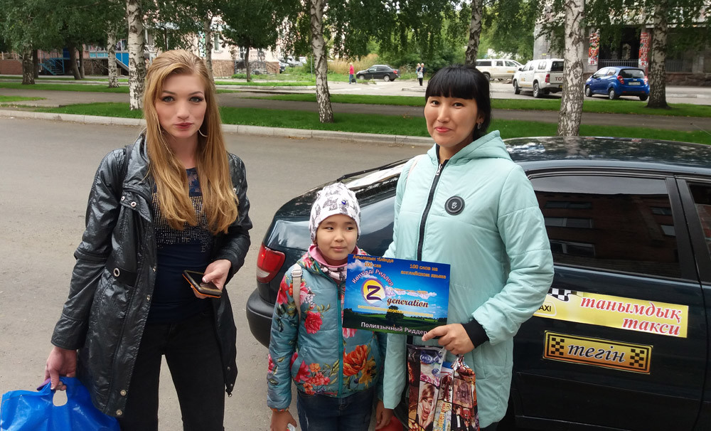 "Эту акцию при поддержке городского отдела культуры, развития языков, физической культуры и спорта мы запустили именно в Риддере два года назад. Впервые яркое такси появилось на улицах нашего города 2 декабря 2016 года. Организатором тогда выступил риддерский филиал партии "Нұр Отан", а темами викторины были "25-летие независимости Казахстана" и "День Первого Президента". И вот, буквально две недели назад таксист-ведущий также довозил всех желающих за ответы на вопросы викторины, приуроченной к 173-летию со дня рождения Абая Кунанбаева. Сегодня поездки посвящены теме трёхъязычия. В этот раз нас поддержал клуб развития "Generation Z", - рассказал инициатор акции, директор Центра обучения языкам Маржан Каржаубаева.
