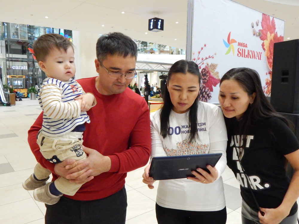 Акция по сбору голосов за участников финального этапа голосования по проекту «100 новых лиц Казахстана» прошла в одном из торгово-развлекательных центров Астаны, передает корреспондент BNews.kz. Провела ее редакция интернет-проекта el.kz.