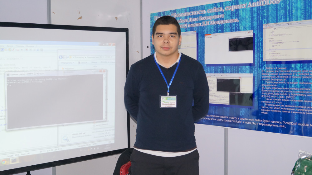 Ученик девятого класса 15 школы, Диас Маккамбаев, самостоятельно написал программу для предотвращения DDOS-атак на сайтах. По словам Диаса, эта проблема на сегодня очень распространена в сфере сетевой безопасности.