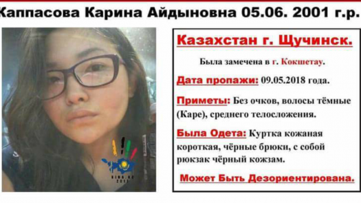 По информации пресс-службы ДВД Акмолинской области, Карина Каппасова, 2001 г.р., ушла из дома 9 мая. С тех пор её местонахождение неизвестно. Отмечают, что подросток - из благополучной семьи.