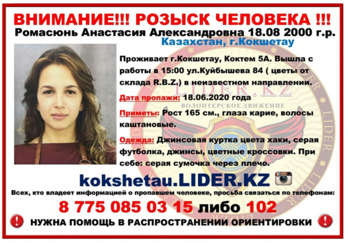 "Со слов коллег, 18 июня после обеда около 15 часов дня у нее произошел конфликт с сотрудниками. Сразу после ссоры Анастасия собрала вещи и ушла. Куда – никому не говорила", –рассказали подробности в пресс-службе ДП Акмолинской области.