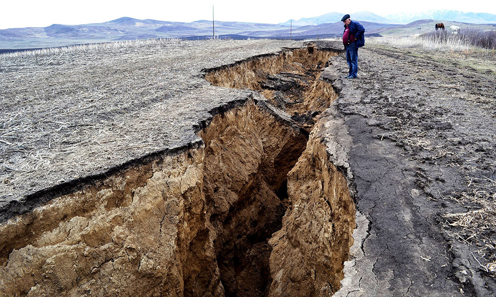 Огромная водомоина, напоминающая собой геологический разлом, образовалась на месте полевой дороги в результате интенсивного таяния снега на участке Караозек в Солоновском сельском округе Катон-Карагайского района, сообщает Аltaynews.kz.