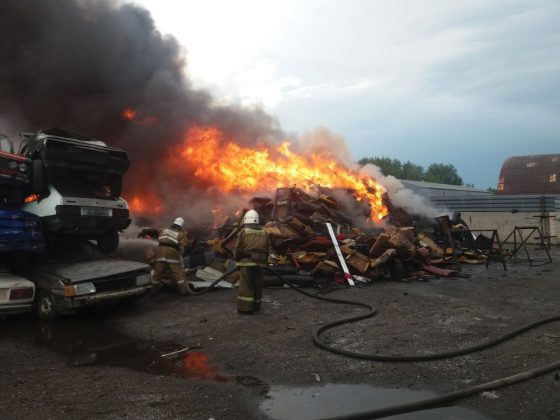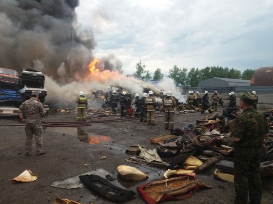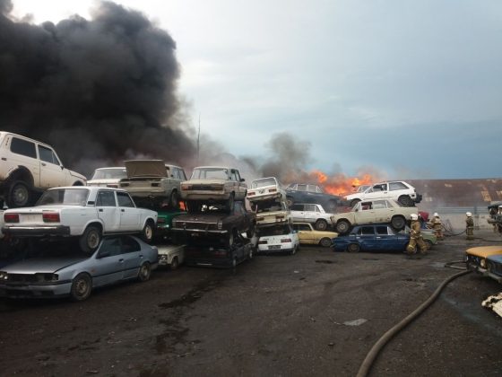 Пожар произошёл накануне вечером на территории пункта приёма вышедших из эксплуатации транспортных средств, сообщает alau.kz.