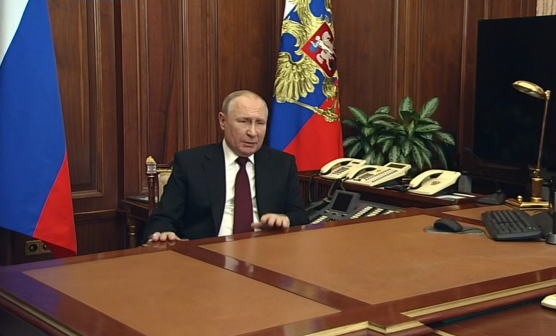 До этого он выступил с телеобращением к гражданам, которое полностью касалось событий в Украине и того, почему это так важно для России.По мнению Путина, ситуация в Донбассе приняла критический характер.