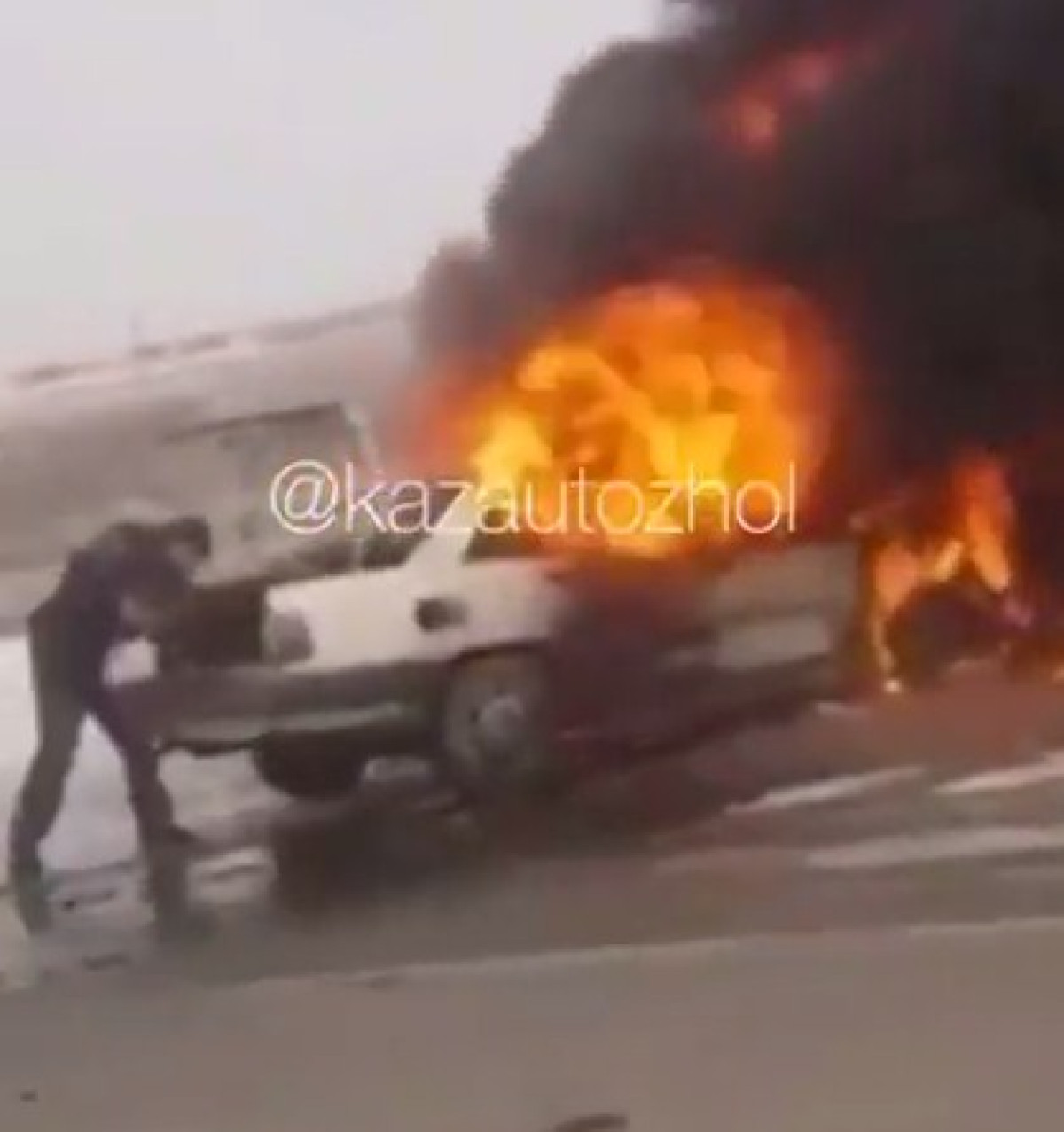"К счастью, рядом оказались сотрудники дорожно-эксплуатационного участка № 61 Павлодарской области, которые патрулировали трассу. В течение двух минут они вызволили людей из седана и позвонили оператором "103", – информировала Ордабай.