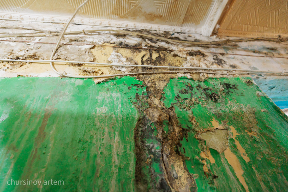 Раньше здесь было общежитие. В девятностые комнаты отдали под постоянное жилье. Внутри подъезды поделены на секции. Туалеты общие на несколько квартир. А вот водопровод люди провели другой, поэтому старые кухни теперь используются скорее как складские помещения.