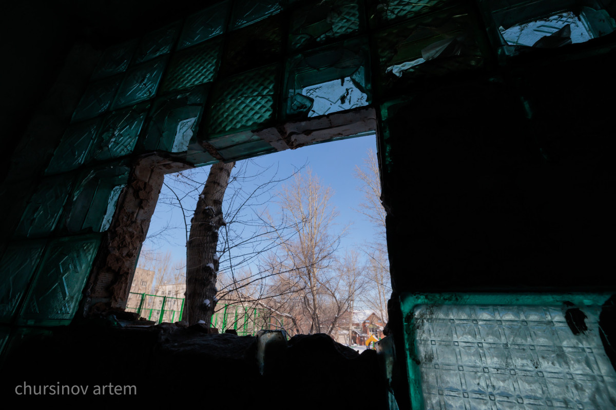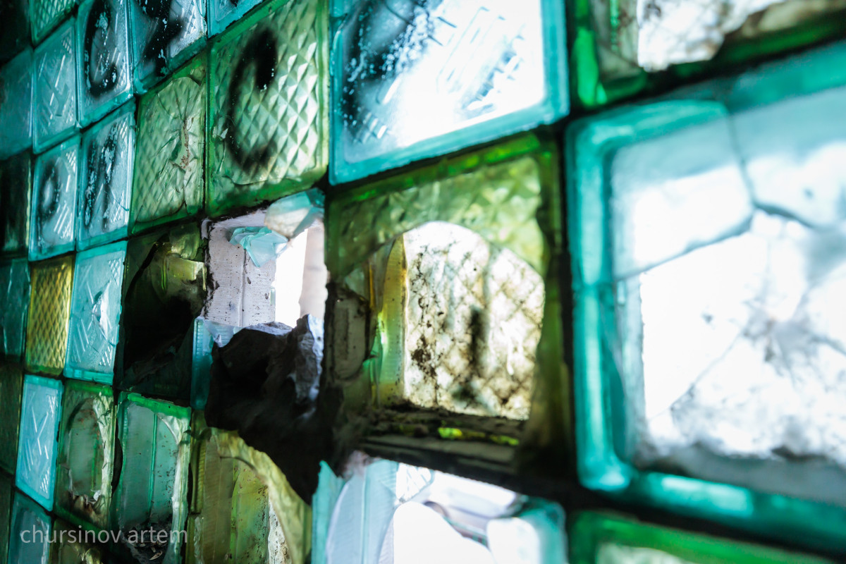Чтобы свет проникал в подъезды проектировщики использовать нестандартное, но модное в те времена решение – разноцветные стеклянные блоки. Раньше здесь было красиво, но теперь подоконники используют в качестве пепельниц для сигаретных окурков. Сквозь разбитые части проникает холод, отсюда и уличная температура.