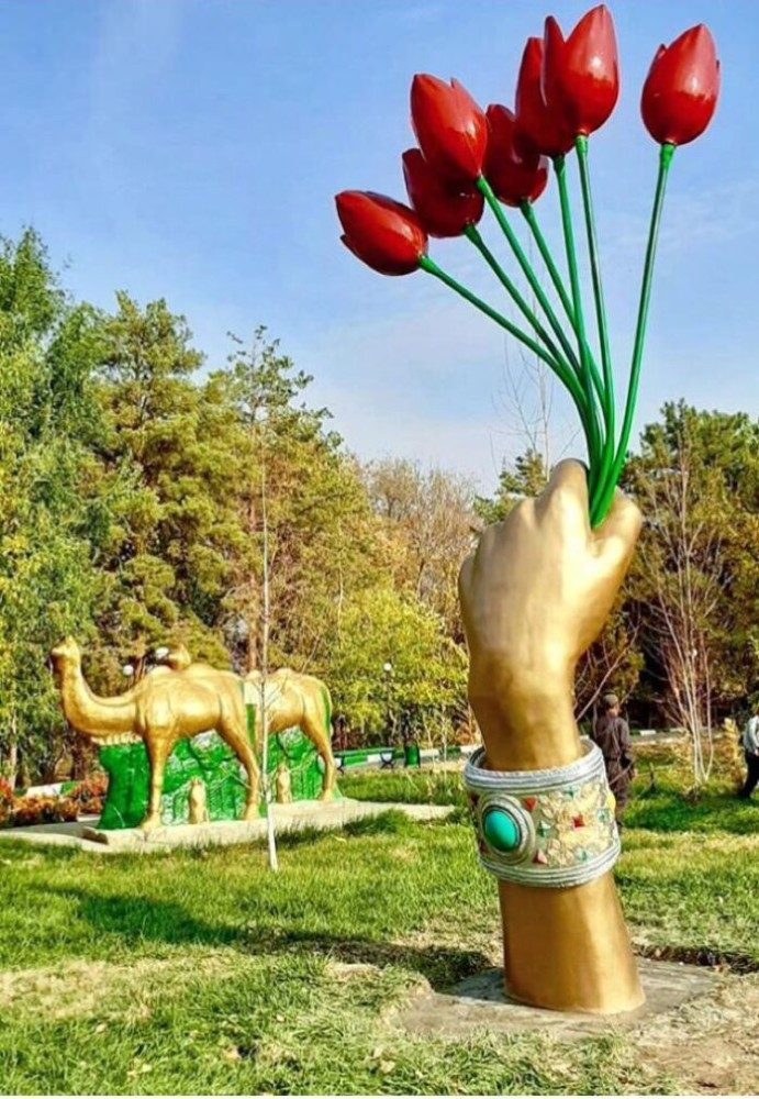 "Отырар", инсталляция называется "Тюльпан – наследие Юга" и олицетворяет единство человека и природы. По задумке автора, это рука Матери-земли, ну а тюльпаны исторически впервые появились именно в южном регионе Казахстана.