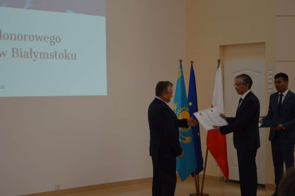 В год 30-летия установления дипломатических отношений между странами в городе Белосток – административном центре Подляского воеводства Польши – открылось почётное консульство Республики Казахстан. Почётным консулом назначен ректор Высшей экономической школы в Белостоке, председатель наблюдательного совета Агентства регионального развития, профессор Александр Прокопюк, передаёт